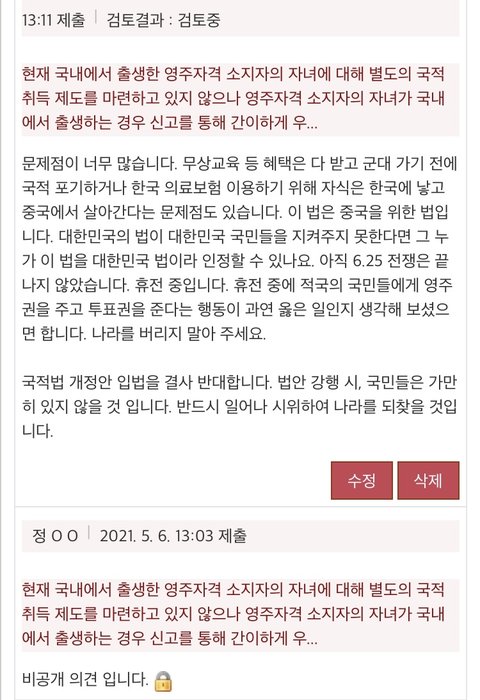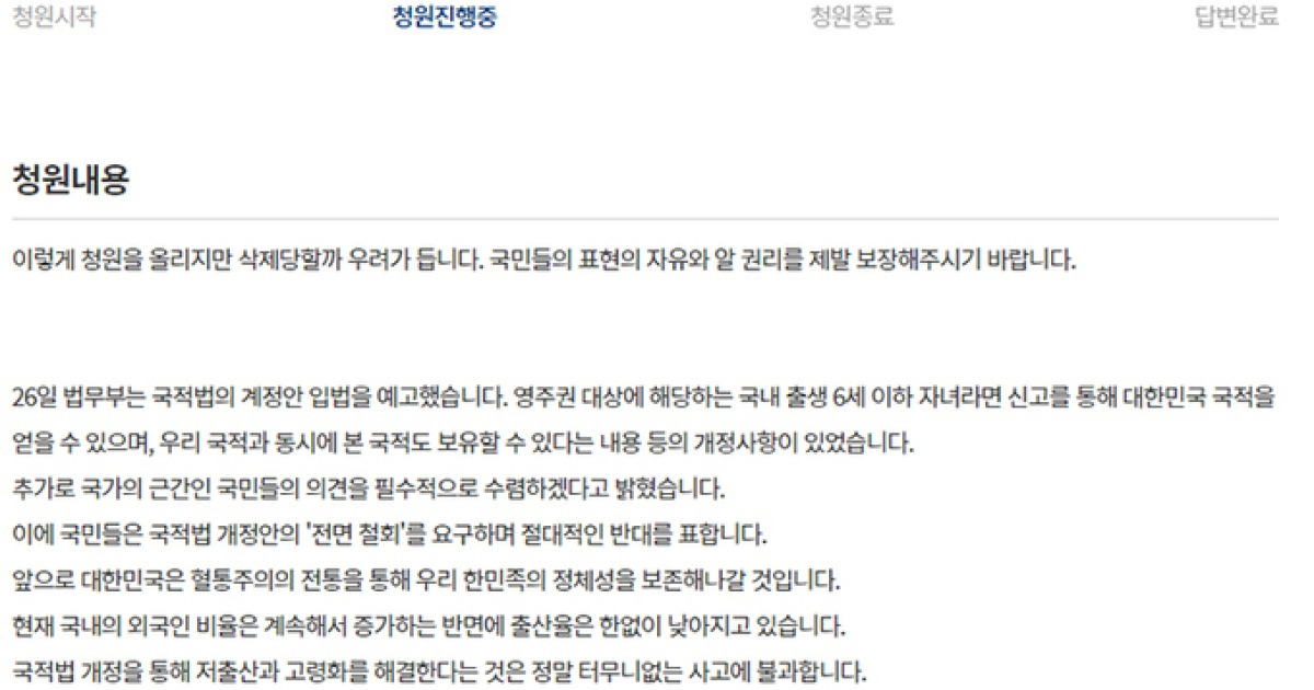 < 국적법 개정안 입법 반대 국민청원 > 청원 내용 잘 읽어보시고, 동의 부탁드립니다.